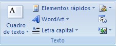 Esta compuesto por CUADRO DE TEXTO, ELEMENTOS RAPIDOS, WORDAR, Y LETRA CAPITAL.